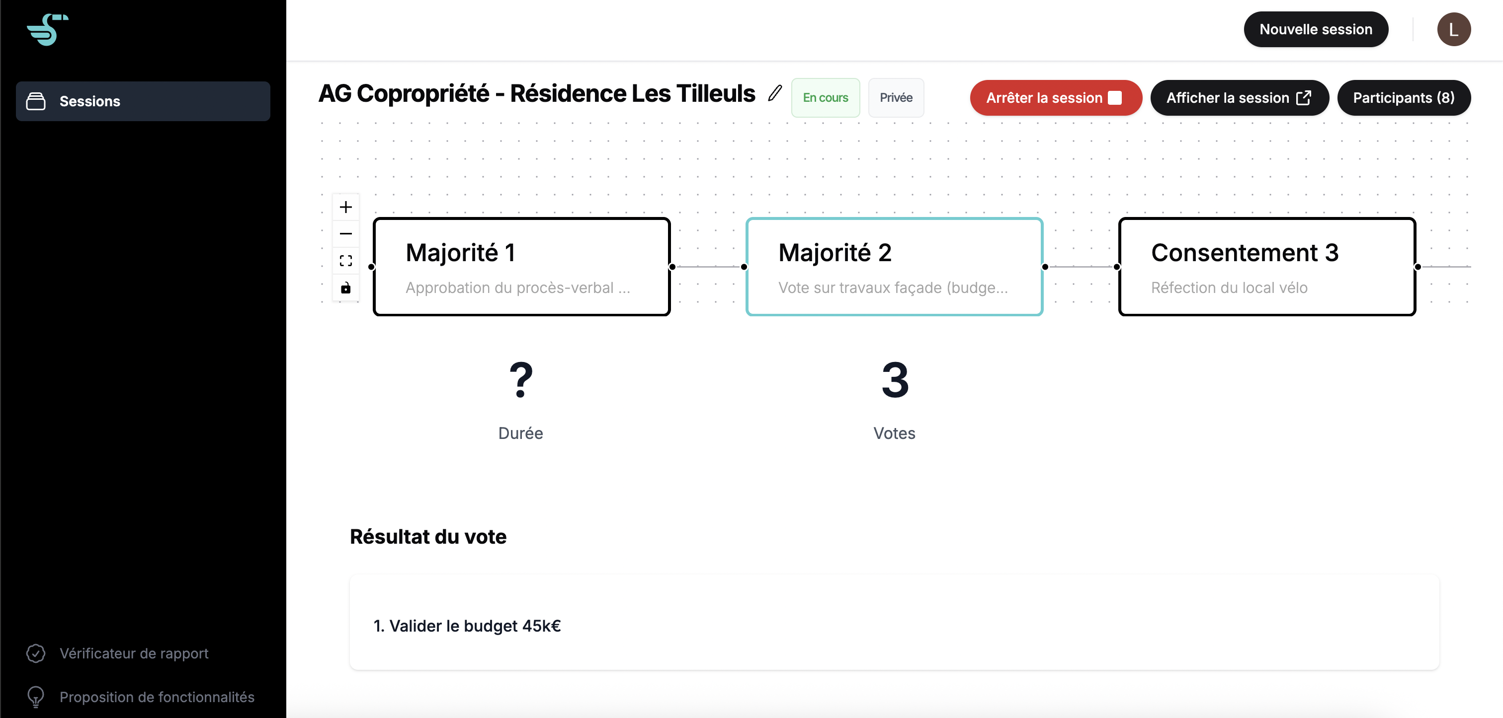 Permettez à des centaines de membres de participer à vos décisions, où qu'ils soient, directement depuis leur mobile. Simple, rapide et efficace.