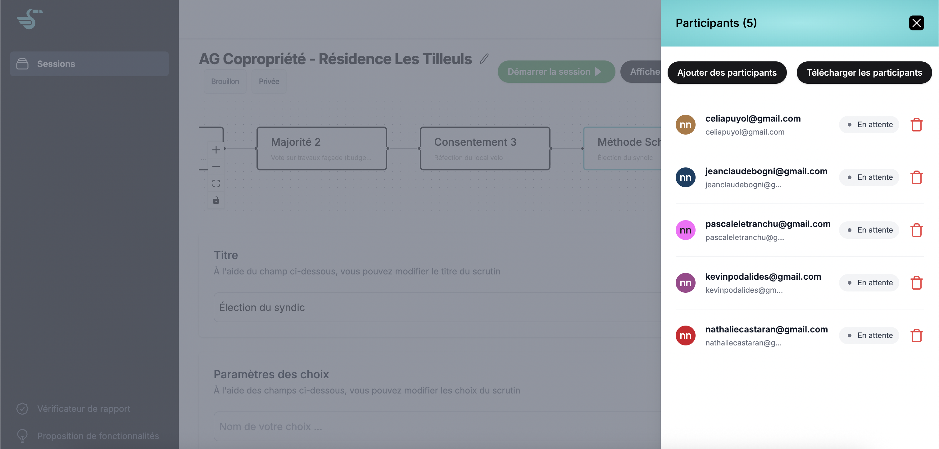 Invitez vos participants par email avec un lien privé unique et soyez informé si les participants ont votés